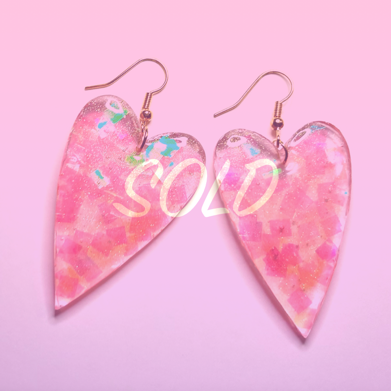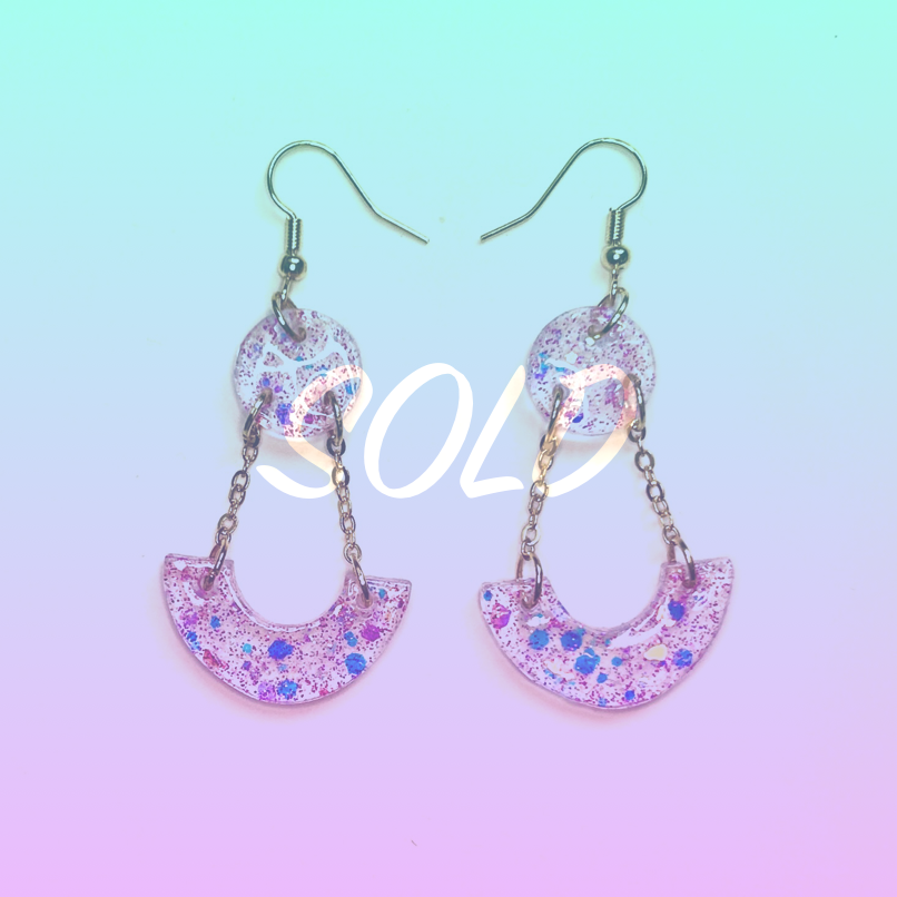 Bright yellow and dark teal multicolored glitter glow-in-the dark resin earrings